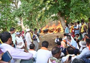 कवर्धा: कवर्धा के कुकदूर थाना क्षेत्र के बाहपानी गांव के पास भीषण सड़क दुर्घटना में हुए सेमहरा गांव के 19 मृतकों के अंतिम संस्कार में शामिल हुए उपमुख्यमंत्री विजय शर्मा। ग़ौरतलब है कि अनियंत्रित होकर गड्डे में पलटे पिकअप वाहन में सवार सभी लोग सेमहारा गांव के रहने वाले थे, जो जंगल से तेंदूपत्ता तोड़कर वापस लौट रहे थे।